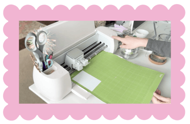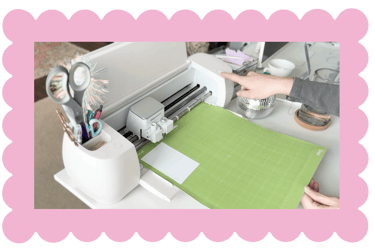 Place your paper on the mat and then slide it under the two side guides until it won't go. Press the load button – it will blink when ready for paper. The Cricut will take your mat and measure it. Once it's ready to cut, the Go button (middle button) will flash. Push this to start your cut. Once it's complete the first button will flash again. Press that to remove your mat. If at any point you need your machine to stop cutting, hit the third button to pause. This doesn't also work as quickly as you need it to so in a pinch, you can just shut your machine off with the power button to stop the cut.