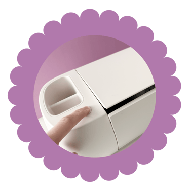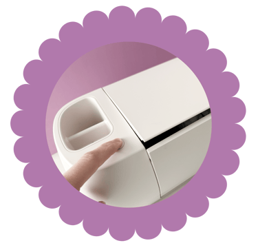 To open your Cricut, press the button on the left as shown in the photo, or if you have a Maker, simply open the top and the bottom panel will open at the same time.